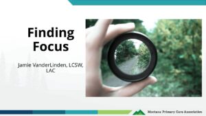 RECORDING AND SLIDES: Jamie VanderLinden, LAC, LCSW talks about how to stay on focus when working with patients. The recording can be viewed here: https://youtu.be/Ok0JkwKPB9Y